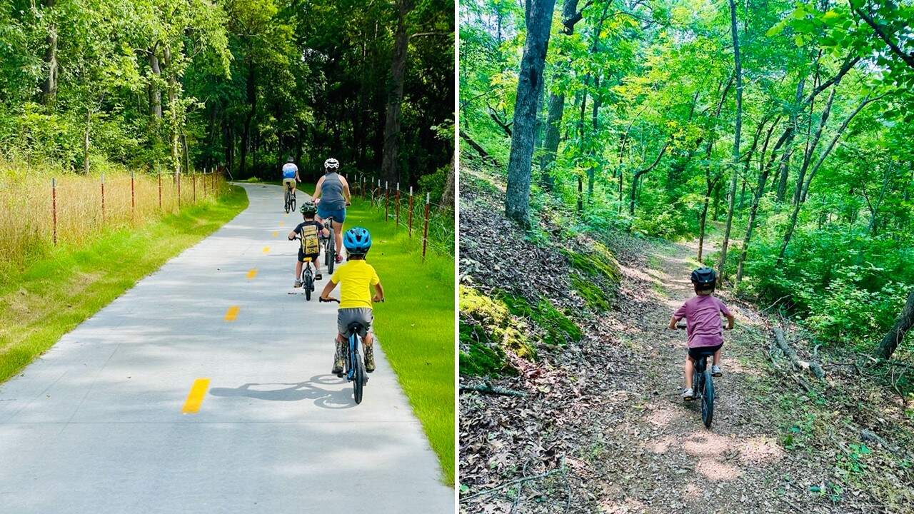 Lake Frances Trail in Siloam Springs, AR (left, hard surface) and Tweety Bird Trail in Bella Vista, AR (right, soft surface).