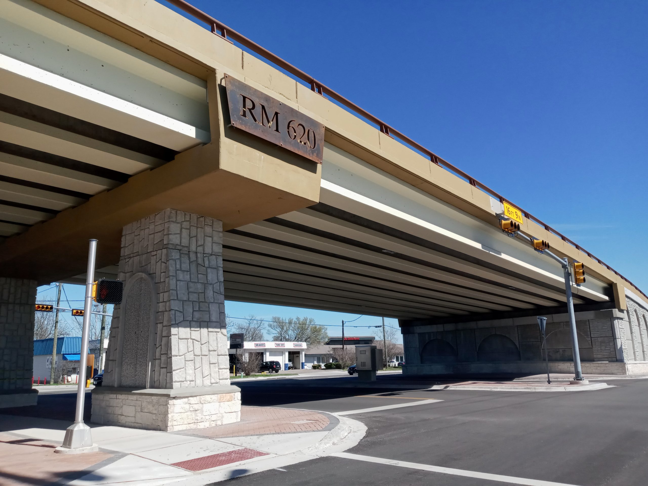 Aesthetics were carefully matched to the local area for the RM 620 Railroad Overpass and Roundabout project.